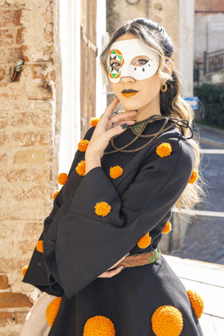 Clementizia è da oggi una realtà, una creazione, unica, inimitabile, segno di appartenenza e caratterizzante il nostro intero territorio. Una maschera che nasce dalle radici, della liquirizia, della terra in cui crescono i nostri agrumi e che guarda al futuro, grazie ai dettagli come il girocollo in pelle tagliato con il laser.