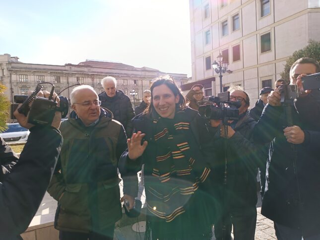 CATANZARO Arriva nel pomeriggio ventoso di Catanzaro avvolta nel “vancale” di Tiriolo, lo scialle che è uno simboli indennitari della calabresità, riceve i sorrisi di molto popolo di sinistra che finalmente vede in lei la speranza di un partito che mette al bando i “sì però…” o i “si ma anche…”, si lancia in un calorosissimo abbraccio con il sindaco Nicola Fiorita, che ha sostenuto con forza quand’era solo candidato alla guida del capoluogo e senza i favori del pronostico. La tappa catanzarese di Elly Schlein, candidata alla segreteria del Pd in lizza con il governatore Stefano Bonaccini alle primarie del 26 gennaio, è molto politica, dopo il tuffo studentesco all’Unical di Cosenza.