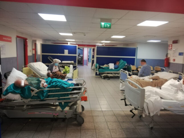 Le scene dall’interno del reparto sono, purtroppo, già viste: cinque pazienti in stanze da due posti (come si intuisce dalla foto in alto, tratta da Cosenza 2.0), letti così vicini da non consentire il passaggio degli operatori sanitari, mentre molti pazienti giacciono su letti disposti nei corridoi. La privacy non esiste. E la situazione di sovraffollamento rende pressoché impossibile rispettare il distanziamento tra i pazienti in ossequio alle disposizioni per il contenimento del Covid-19. Il reparto è un potenziale cluster quotidiano, altro che prevenzione. Eppure la provincia di Cosenza è quella che ha pagato il prezzo più alto negli anni della pandemia.