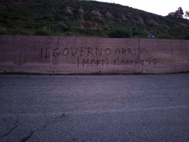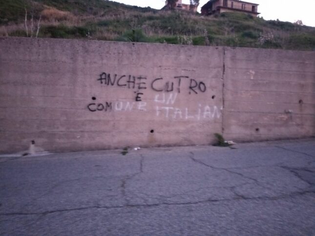 “Cutro non difende Piantedosi”, recita una scritta apparsa su un muro all’alba. Mentre in un’altra reca la scritta “Il Governo arriva i morti rimangono”. Ed ancora: “La loro speranza (quella dei migranti, ndr) è uguale alla nostra”. Su un altro muro si legge: “Anche Cutro è italiana”. Così come su un altro reca la scritta: “+72 (morti, ndr) Cutro e la Calabria come Siria e Pakistan abbandonati a se stessi”. E scritte sono comparse anche sull’asfalto: “Benvenuti nel nulla”.