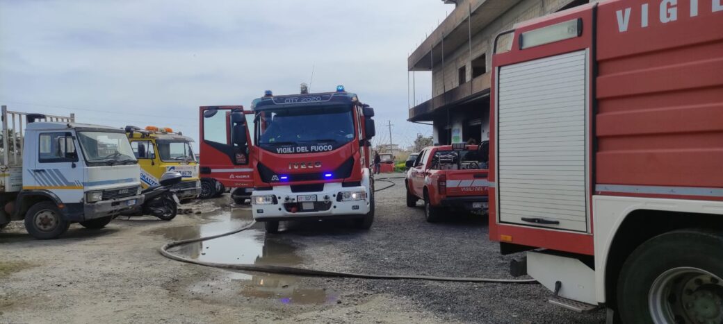 Autocarrozzeria in fiamme a Siderno, i vigili del fuoco evitano il peggio