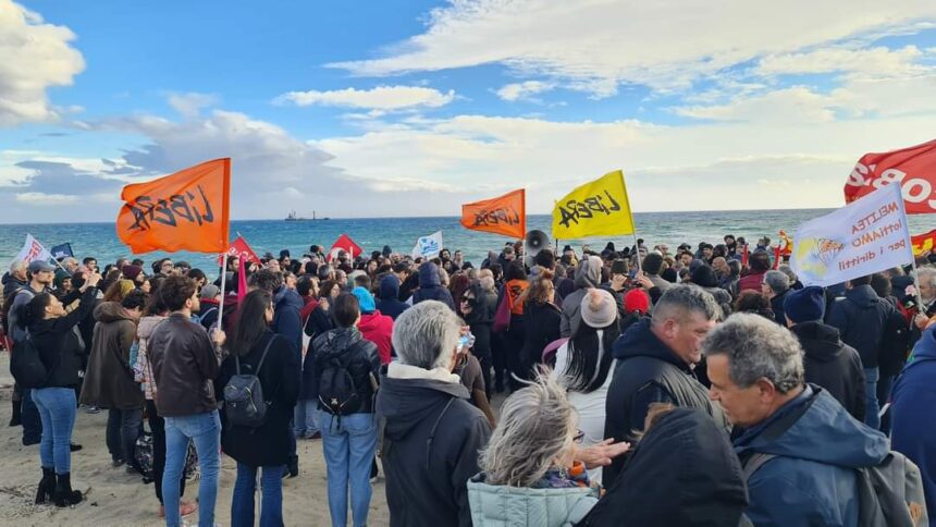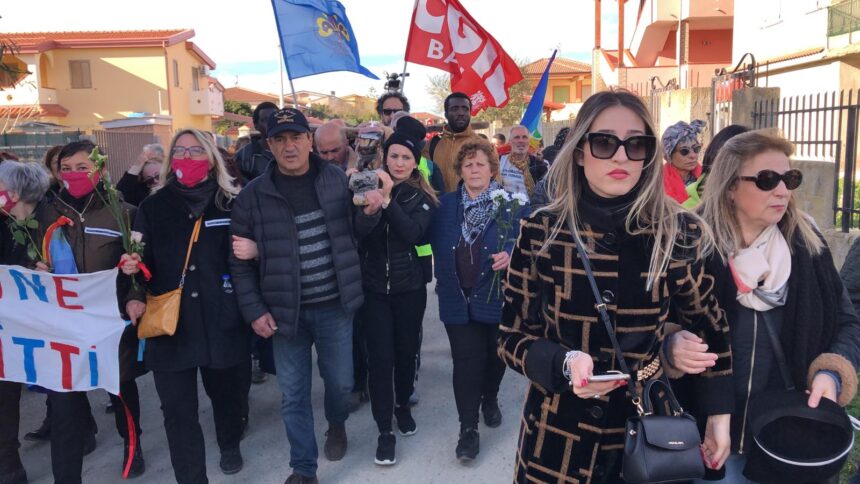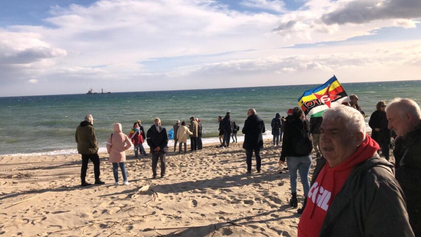 Un minuto di raccoglimento in memoria delle vittime ha concluso la manifestazione “Fermare le stragi in mare subito” promossa dalla rete Asilo a Steccato di Cutro. Il lunghissimo corteo con oltre 5000 persone provenienti da varie regioni, si è fermato sulla spiaggia di Steccato dove è stata lasciata una corona di fiori alla presenza di numerosi sindaci ed amministratori della Calabria e di altri comuni italiani. Dopo il minuto di silenzio la corona è stata poggiata sulla spiaggia. Poco distante, un altro gruppo ha iniziato un momento di preghiera in arabo. Molte persone, soprattutto ragazzi, si sono fermati sulla spiaggia dopo aver lasciato fiori sulla riva.