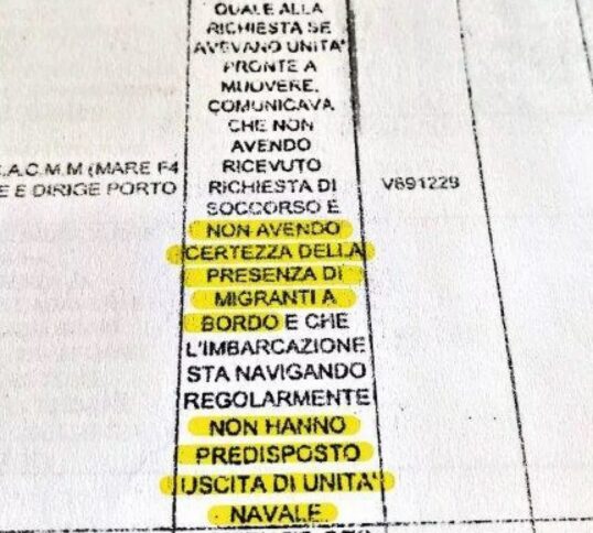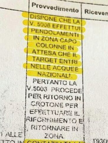 I nuovi documenti emersi, però, racconterebbero altro. Un appunto nel giornale delle operazioni di quella notte della Guardia di finanza, scritto a penna dall’ufficiale di turno alle 23.20 e pubblicato da Repubblica, un’ora dopo l’avvistamento del caicco in arrivo dalla rotta turca da parte dell’aereo di Frontex rivela quello che era chiaro sin dall’inizio. «Si comunica avvistamento Eagle 1 di natante con migranti», scrive l’ufficiale dopo aver ricevuto da Roma la nota di Frontex, affidando al giornale delle operazioni quella che è la logica ed evidente interpretazione – fin qui negata – di perché quella imbarcazione segnalata da Frontex sia sospetta, ovvero perché trasportava migranti: non lo dice chiaramente il dispaccio di Frontex che segnala una sola persona sul ponte e dà conto di una rilevazione termica consistente sottobordo, ma lo dice la logica e l‘esperienza dell’ufficiale di turno quella sera alla sala operativa della Guardia di finanza. Che dispone l’uscita della motovedetta V5006 prima e del pattugliatore Barbarisi poi. Ma quella notazione a penna sparisce dalla annotazione di polizia giudiziaria che la sezione operativa navale di Crotone della Guardia di finanza redige il giorno dopo, la domenica 26, quando la tragedia si è ormai compiuta.