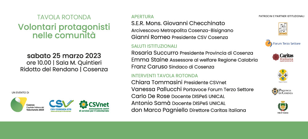 Lo sviluppo del Sud passa dal volontariato, arriva l’evento inaugurale di Cosenza capitale