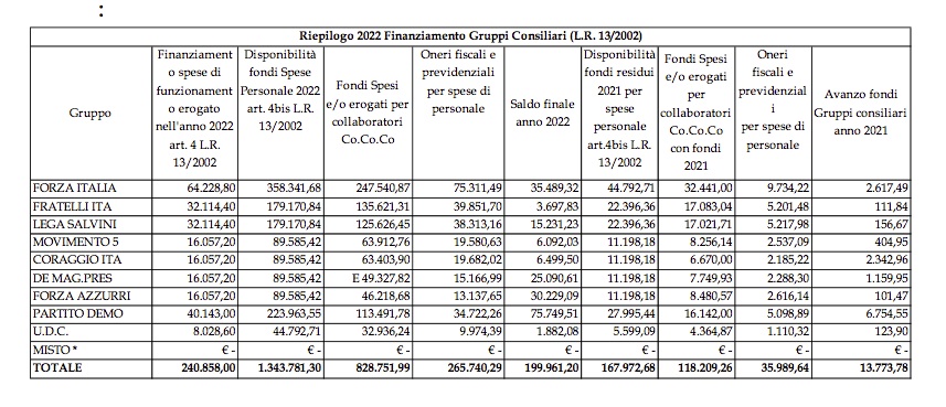 Consiglio regionale, gruppi “virtuosi”: regolari i rendiconti delle spese per il 2022 – TABELLA