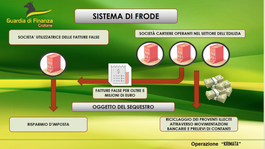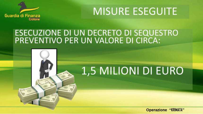 CROTONE Questa mattina il Nucleo di Polizia Economico-Finanziaria della Guardia di finanza di Crotone ha dato esecuzione, nei comuni di Isola di Capo Rizzuto, Cutro e Crotone, al decreto di sequestro preventivo a carico di sette indagati. Il provvedimento è stato emesso dal Giudice per le indagini preliminari presso il Tribunale di Catanzaro, su richiesta della Procura della Repubblica – Direzione Distrettuale Antimafia di Catanzaro. Tre degli indagati erano già stati interessati dall’ordinanza applicativa di misure cautelari di tipo personale emessa dal Giudice per le indagini preliminari presso il Tribunale di Catanzaro nell’ambito dell’operazione “Krimata” eseguita nello scorso mese di gennaio, quando il giudice ha riconosciuto a loro carico la gravità indiziaria in ordine al reato di associazione per delinquere finalizzata alla commissione dei delitti di frode fiscale, riciclaggio, impiego di utilità di provenienza illecita e trasferimento fraudolento di valori. Il sequestro preventivo è stato emesso con riferimento alle ipotesi di reato di carattere tributario e di riciclaggio, a vario titolo contestati ai sette indagati e scaturisce all’esito di ulteriori approfondimenti investigativi di natura patrimoniale connessi alla predetta operazione “Krimata”, le cui indagini sono attualmente nella fase preliminare, che necessita della successiva verifica processuale nel contraddittorio con la difesa degli indagati.