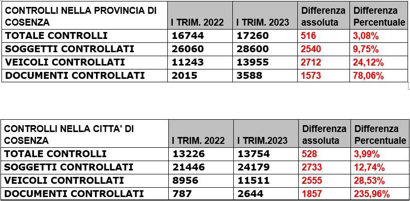 Passando a setaccio i dati, emerge che sono in crescita il numero di controlli effettuati dalle forze dell’ordine sul territorio nel corso del primo trimestre del 2023 rispetto all’anno precedente. Un dato in crescita sia sul capoluogo sia sull’intera area provinciale.