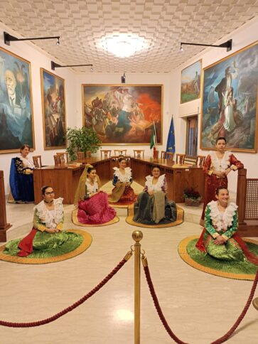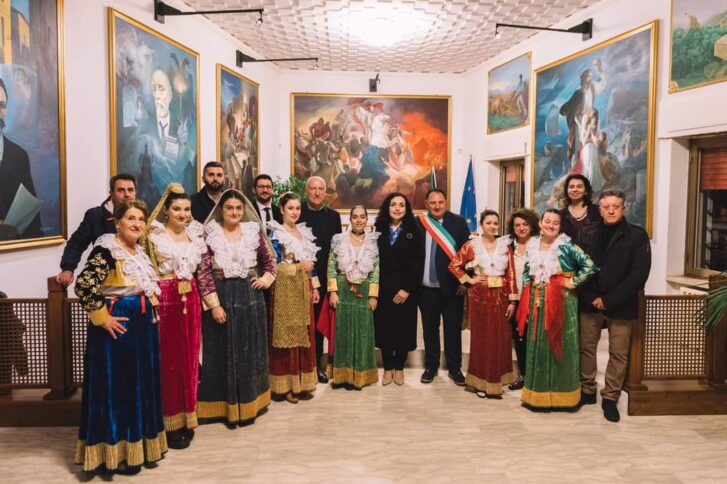 La Presidente è stata accolta dalla Banda Musicale della Città prima di essere accompagnata in visitanell’elegante Sala Consiliare cittadina dove si trovano maestosi dipinti del pittore albanese Petrit Ceno, dedicati alla venuta degli Albanesi in Italia. Dichiaratasi molto colpita dalla bellezza fisica e spirituale di una terra così ricca e forte di identità e prospettive, soddisfatta e contenta dell’accoglienza riservatale dalla comunità e dalle istituzioni, accompagnata anche dall’assessore regionale alle minoranze linguistiche Gianluca Gallo, la Presidente Kvjosa Osmani – Sadriu si è fermata a cena a San Giorgio Albanese, con tutti i sindaci dei cinque comuni arbëreshë del territorio, degustando un paniere di esperienze enogastronomiche autentiche.