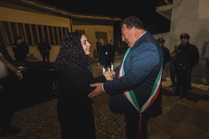 SAN GIORGIO ALBANESE «Tutta l’Arbëria e con essa l’intera Calabria non possono che essere soddisfatte anzitutto per la condivisione di valori e sentimenti, di vicinanza e di comune visione del futuro di cui si è resa protagonista la Presidente della Repubblica del Kosovo Kvjosa Osmani – Sadriu, la cui missione istituzionale nella nostra regione abbiamo avuto l’onore ed il piacere di vedere concludere lo scorso giovedì 13 aprile a San Giorgio Albanese». È quanto dichiara il sindaco Gianni Gabriele esprimendo sincera emozione a nome suo personale, dell’amministrazione comunale e della comunità per il fatto che l’importante tappa del Capo di Stato kosovaro si sia conclusa proprio nel comune di Mbuzat (dal nome arbëreshë del capo albanese che vi condusse i compatrioti di nome Busa), con un bel momento di confronto, di scambi e di relazioni probabilmente più spontaneo, meno formale e diretto di tutti quelli precedenti, per l’essersi svolto a tarda sera ed al termine di un lungo, intenso e articolato programma ufficiali di incontri in tutti i territori.