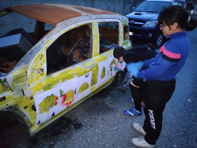 L’auto incendiata diventa opera d’arte. L’idea geniale del centro “Noi Ragazzi di Oggi” di Reggio Calabria – FOTO
