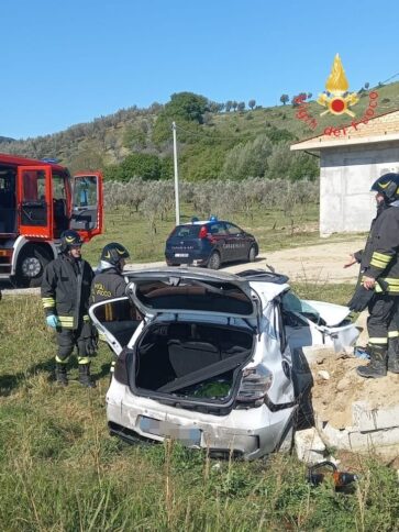 L’intervento dei vigili del fuoco è valso ad estrarre dall’abitacolo la conducente che è stata immobilizzata su una barella e affidata al personale sanitario del Suem118 per le cure del caso e il successivo trasporto in una struttura ospedaliera con una seconda ambulanza. Si provvedeva altresì alla messa in sicurezza del sito e della vettura. Sul posto i carabinieri per ricostruire le cause dell’incidente.