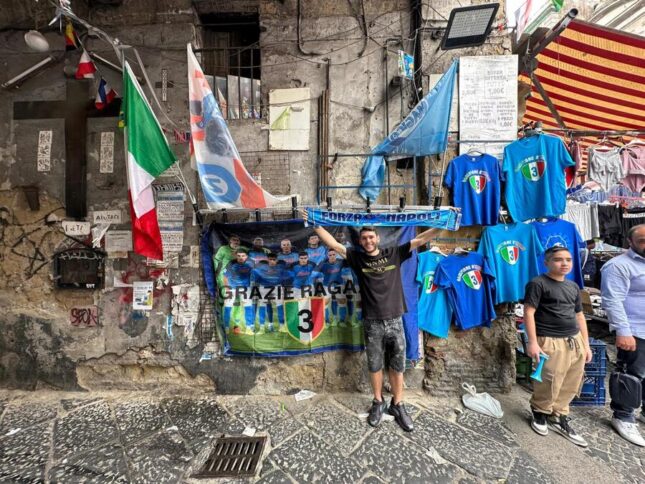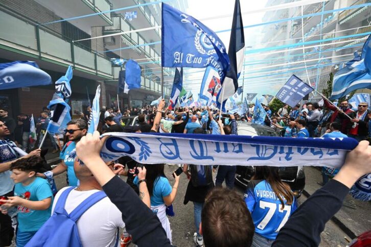 Centinaia di tifosi si sono radunati in via Toledo, nel centro di Napoli, cantando cori e sventolando bandiere. Tra gli slogan, incitamenti alla squadra, ai giocatori più amati dagli azzurri e a Diego Armando Maradona. Non mancano i cori contro la nemica Juventus. In diverse zone della città, poi, si ode l’esplosione di botti.
