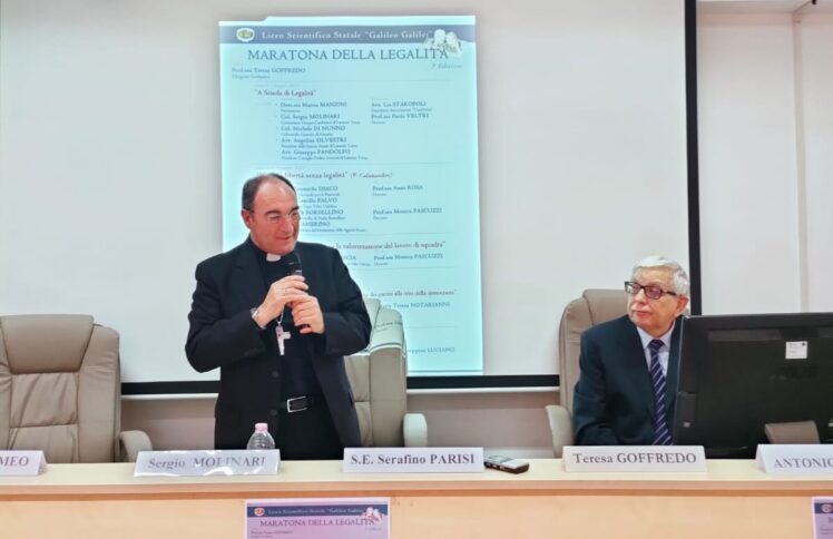 LAMEZIA TERME «La legalità da sola non serve». Con queste parole il Vescovo, monsignor Serafino Parisi, ha iniziato il suo intervento alla “Maratona della legalità”, organizzata dal Liceo Scientifico “Galileo Galilei” di Lamezia Terme, sottolineando che «la legalità è un concetto di per sé bello, suggestivo, importante, impegnativo, sul quale si scrivono tante pagine».