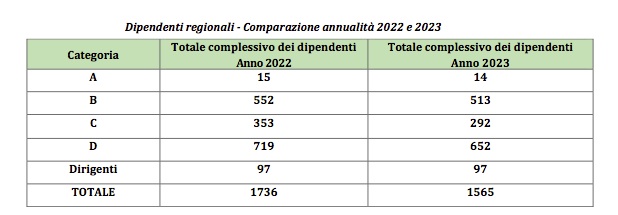 I dati della Regione, dalla struttura amministrativa al personale, che ha perso in un anno 171 unità attestandosi a quota 1.565. Invariata la consistenza della dirigenza. Si abbatte il tasso di assen…
