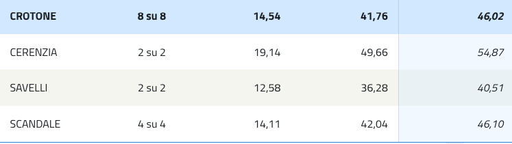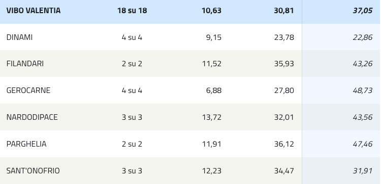 Crotone è la provincia col maggior numero di votanti (49,19%) mentre a Vibo si è recato ai seggi il 39,82% degli aventi diritto, rispetto al 47,17% delle precedenti elezioni.