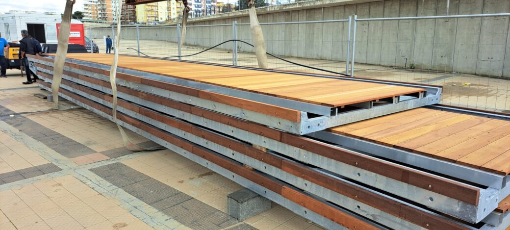 Catanzaro, consegnato il primo blocco di pontili galleggianti per l’installazione al porto – FOTO