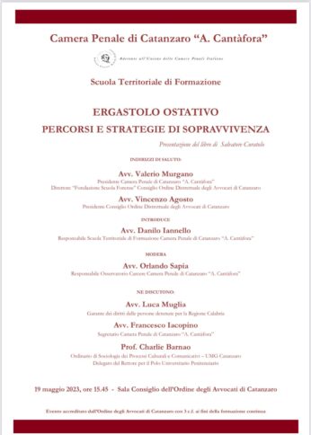 Domani la Camera Penale “Cantafora” approfondisce il tema in occasione della presentazione del libro di curatolo