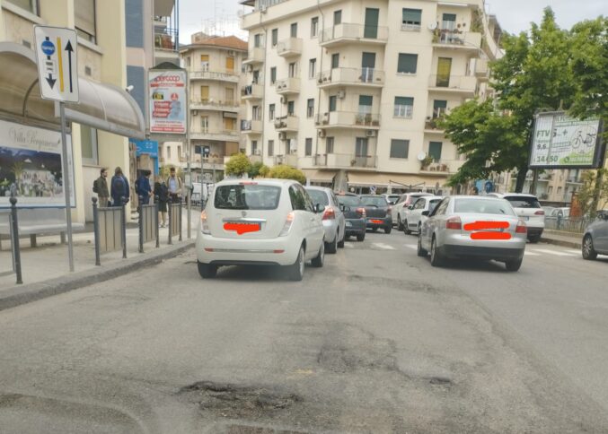 Buche profonde in ogni angolo e automobili in sosta perenne in seconda e terza fila mettono a nudo il volto decadente del capoluogo bruzio