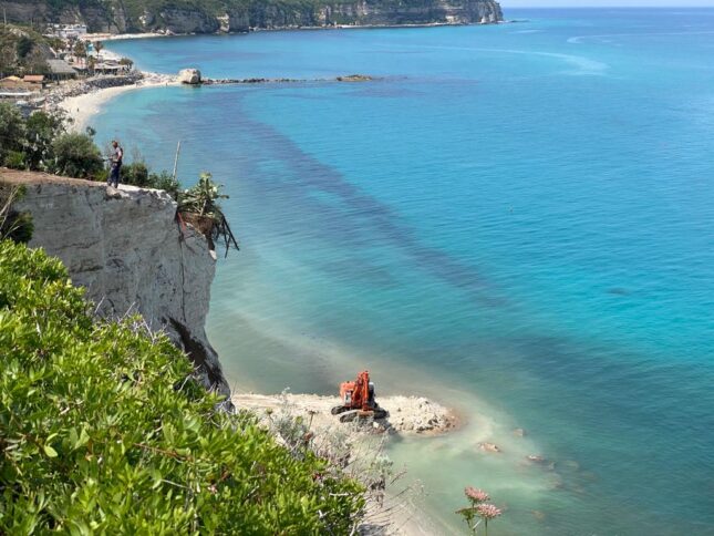 Crollo della rupe a Tropea, procedono spediti i lavori di messa in sicurezza dell’area – FOTO