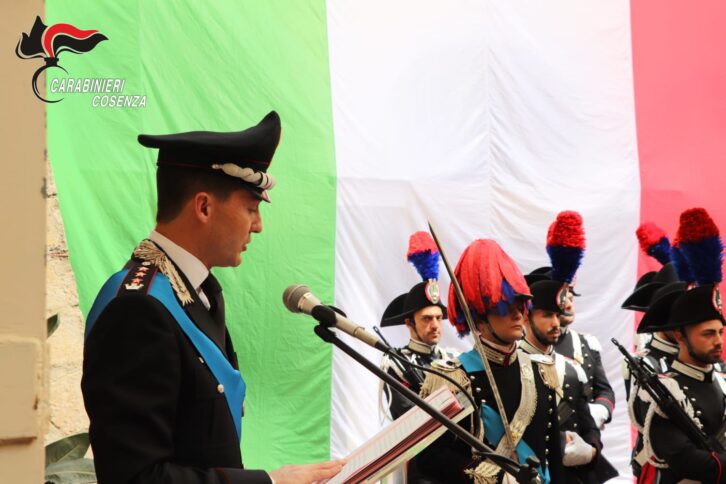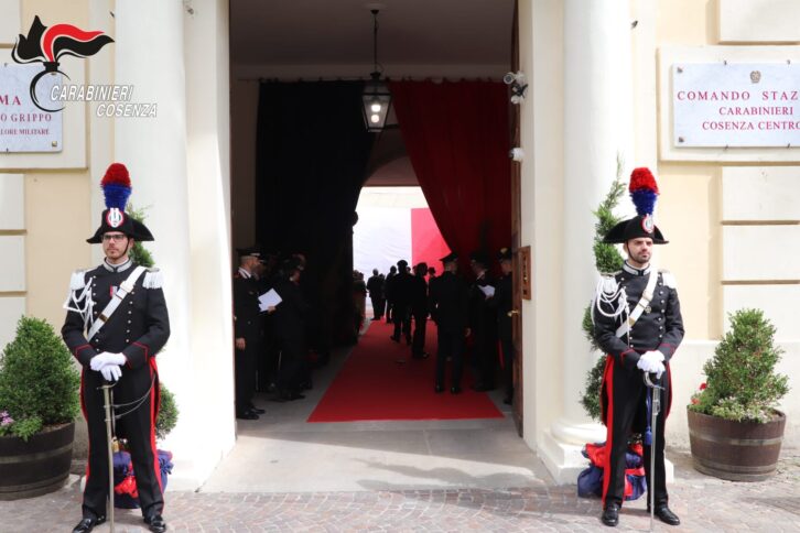 COSENZA Questa mattina, a Cosenza, presso al Caserma “Paolo Grippo”, storica sede dell’Arma Bruzia, è stato celebrato il 209° Annuale di Fondazione dell’Arma dei Carabinieri, ricorrenza che si celebra in tutta Italia e fissata il 5 giugno di ogni anno a perenne ricordo del conferimento della prima Medaglia d’oro al valor militare – avvenuto il 05 giugno 1920 – per il contributo fornito dall’Arma all’Italia durante la Prima Guerra Mondiale. La cerimonia è avvenuta al cospetto delle più alte autorità militari e civili cittadine e dei rappresentanti di tutte le associazioni militari e combattentistiche d’arma. Presenti, tra le autorità civili Sua Eccellenza il Prefetto Vittoria Ciaramella, il Procuratore della Repubblica di Cosenza, Mario Spagnuolo, il Procuratore della Repubblica di Paola, Ernesto Sassano, Antonino Iannotta, Sostituto Procuratore della Repubblica di Castrovillari, Giancarlo Lamensa in rappresentanza della presidente della Provincia di Cosenza, Rosaria Succurro, il sindaco della Città di Cosenza, Franz Caruso ed il Questore Michele Maria Spina. Tra le autorità militari il Comandante Provinciale della Guardia di Finanza con la presenza del Comandante Provinciale dei Vigili del Fuoco. È stato rivolto, inoltre, un deferente pensiero alle autorità religiose diocesane ed in particolare agli Arcivescovi di Cosenza-Bisignano, di San Marco Argentano, di Rossano-Cariati, di Cassano all’Ionio l’Arcivescovo di San Marco Argentano ed all’Eparca di Lungro. La cerimonia, presieduta dal Comandante Provinciale dell’Arma dei Carabinieri di Cosenza, Colonnello Agatino Saverio Spoto, ha preso il via alle 10.30 con lo schieramento di una formazione in armi, composta da un’aliquota di Carabinieri in Grande Uniforme Speciale e, in particolare, tre blocchi composti da una rappresentanza dei Comandanti di Stazione della linea Territoriale, dei Comandanti di Stazione del comparto Forestale, nonché un’aliquota di Carabinieri sciatori, artificieri, motociclisti ed effettivi al Comando Carabinieri per la Tutela del Patrimonio culturale.