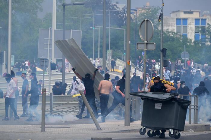 PARIGI Stato di allerta in tutta la Francia per la terza notte di tensione dopo l’uccisione del diciassettenne Nahel da parte di un poliziotto, a Nanterre. Proprio a Nanterre, periferia di Parigi, una banca è stata incendiata dopo la fine – macchiata da gravi incidenti – della «marcia bianca» per Nahel. Le fiamme minacciano le abitazioni vicine. Sono 20 le persone fermate. A Marsiglia, scontri fra manifestanti e polizia al Porto Vecchio, evacuato dalla polizia. A Lione, dove ieri nel quartiere di Villeurbanne è stato incendiato un palazzo, è stato inviato un elicottero del Raid, i reparti speciali antisommossa. Le autorità francesi si aspettano «una propagazione» delle violenze nelle «prossime notti» dopo la morte del diciassettenne Nahel, due giorni fa a Nanterre, ucciso da un poliziotto. E’ quanto contenuto in una nota dei servizi francesi citata da una fonte della polizia. La nota, che diversi media francesi hanno rilanciato stasera, sottolinea che le «prossime notti saranno teatro di violenza urbana con una tendenza alla propagazione» e con «azioni mirate sulle forze dell’ordine e i simboli dello stato o del potere pubblico». I servizi francesi ritengono poco probabile che torni la calma nelle prossime ore o giorni, visti i molteplici «appelli lanciati per raduni davanti ai municipi domani alle 20» un po’ ovunque nel paese. Intanto, per questa notte, oltre ai 40.000 poliziotti e gendarmi, il giorno ha mobilitato unità specializzate in interventi particolari, come le teste di cuoio della gendarmeria, i Gign. Particolare attenzione viene posta sulla vigilanza nella regione di Lille, dove sono stati dispiegati gli uomini del Raid, unità di elite della polizia. I servizi hanno anche «analizzato i social network», rilevando la «volontà di gruppuscoli di estrema sinistra di tentare una convergenza della lotta sulla base della denuncia delle violenze della polizia».