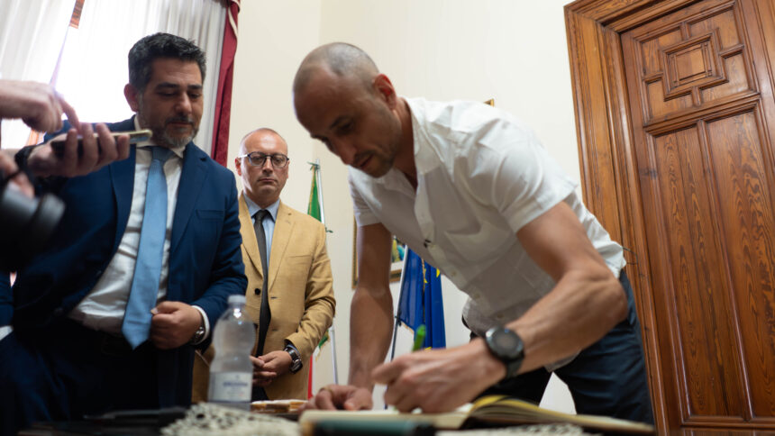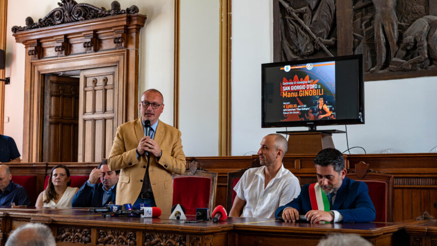 REGGIO CALABRIA È stato consegnato a Manu Ginobili, ex stella del basket Nba e della Viola Basket, il San Giorgio d’Oro, massima benemerenza concessa dal Comune di Reggio Calabria. La cerimonia si è svolta oggi a Palazzo San Giorgio, all’interno dell’aula consiliare, allestita per ricevere numerosi ospiti, tra cui ex giocatori e dirigenti della squadra, tifosi e giornalisti. L’onorificenza era stata assegnata al campione argentino nel 2006, ma lo stesso, essendo impossibilitato a ritirarla, per via degli impegni sportivi, aveva promesso un suo ritorno per ritirare il riconoscimento. A consegnare la pergamena e una speciale targa, che ripercorre tutti i suoi successi sportivi, il sindaco facente funzioni di Reggio Calabria, Paolo Brunetti. Presenti anche il sindaco metropolitano facente funzioni, Carmelo Versace, il consigliere delegato allo Sport, Giovanni Latella, e l’assessora comunale Giuggi Palmenta. Molte le presenze tra i componenti della giunta comunale e del Consiglio comunale.