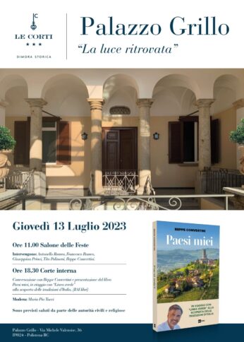 Nel pomeriggio dello stesso 13 luglio, alle 18.30, la corte interna del palazzo sarà dunque lo scenario per la presentazione del libro: Paesi miei, in viaggio con “Linea verde” alla scoperta delle tradizioni d’Italia, (Rai libri). Un libro in cui Beppe Convertini racconta i Paesi «che – come si legge nella pubblicazione – appaiono meno di frequente nelle guide turistiche» e «che offre uno scorcio inedito sull’Italia, sulle tradizioni e sull’impegno dei suoi abitanti a riscoprirle e a preservarle».