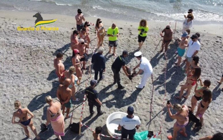 CETRARO Tra la curiosità e l’entusiasmo dei numerosi bagnanti, presenti sulla spiaggia, è tornata in mare “Venus”, un esemplare adulto di Caretta Caretta. La tartaruga era stata rinvenuta, circa tre settimane fa, dai Finanzieri del Reparto Operativo Aeronavale di Vibo Valentia della Guardia di Finanza, catturata da un palangaro illegale al largo di Longobardi, sbarcata a Cetraro e conferita al Centro di Recupero Tartarughe Marine Mare Calabria di Montepaone, con la collaborazione della Capitaneria di Porto di Cetraro.