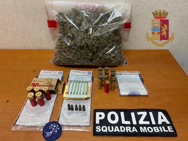 Gli agenti della polizia hanno rinvenuto 4 chilogrammi di marijuana e vari proiettili a Soriano Calabro