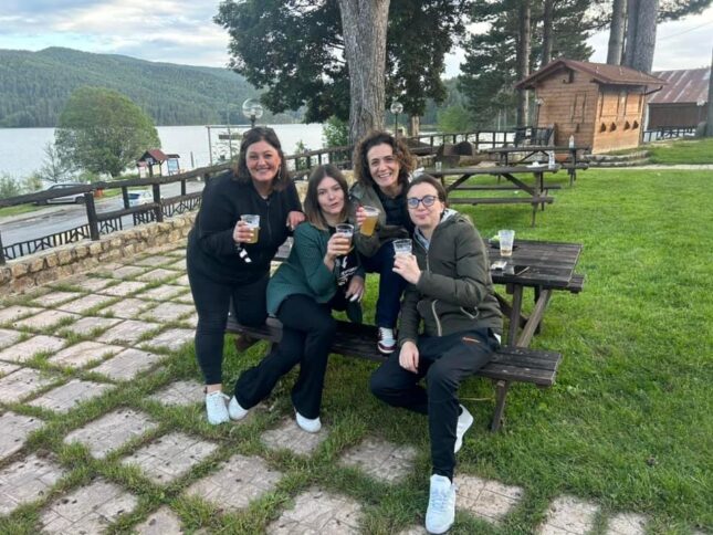 Più avanti, lungo la stessa sponda, c’è un maneggio di cavalli e pony di cui si occupano i tre germani Giuseppe, Giovanni e Aurora Scarcelli, tutti giovani, che per l’intera giornata accompagnano turisti e appassionati. Non lontano è invece ubicata un’attività di pesca sportiva sul lago, con escursioni guidate e noleggio kayak. L’hanno aperta i trentenni Noemi Guzzo, operativa anche con “Il chiosco rosso”, e Alfredo Martire. Entrambi hanno i titoli di guide Aigae e, a parte, del Parco nazionale della Sila. Soprattutto, sono due “autorità” di Lorica per le diverse imprese avviate, che coniugano escursionismo in bici e in barca, cibo e riposo di qualità, condotte senza un solo giorno di sosta: pratiche sportive; alloggi, in un’ottica di ospitalità diffusa, per il soggiorno di chi ama la montagna; chalet e baite in cui pernottare; “Il brillo parlante”, frequentatissimo ristorante tipico e pub innovativo che fa da terrazza sull’Arvo, nato per iniziativa di Alfredo e dei suoi soci, Antonio Morrone, Rita Martire e Maria Morrone, poi cresciuto a vista anche grazie al lavoro incessante del resto del gruppo: Noemi, Alessia Barca e Ivan Leonetti.