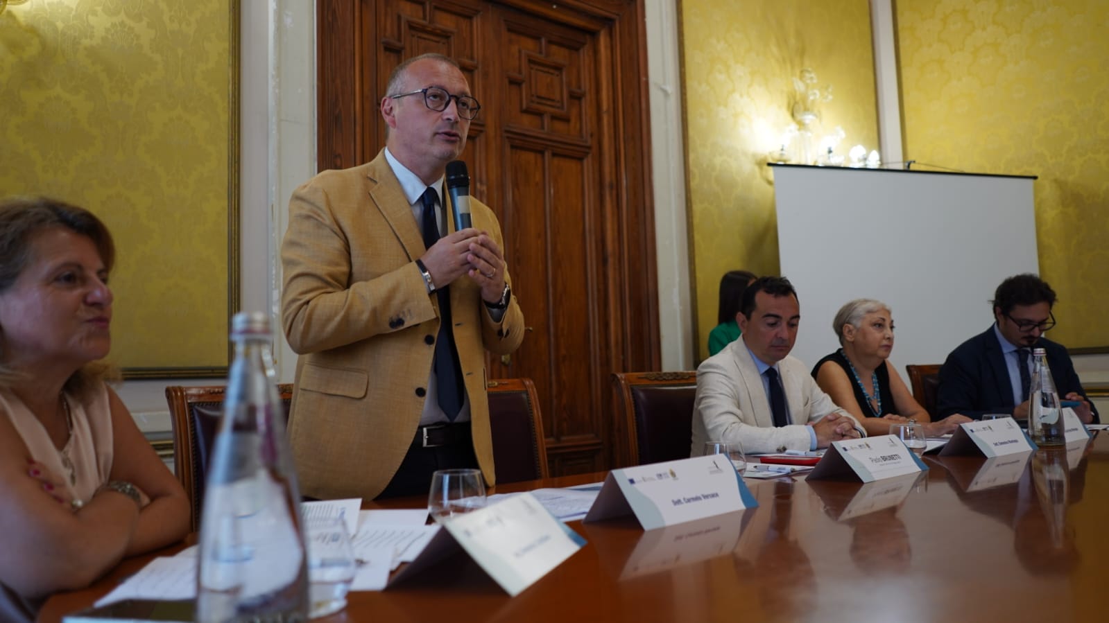 REGGIO CALABRIA Un affollato “Salone dei Lampadari Italo Falcomatà” di Palazzo San Giorgio ha accolto la presentazione dell’ambizioso “I Walk the line”, un progetto della Città Metropolitana di Reggio Calabria, promosso in collaborazione con il Ministero dell’Interno e finanziato nell’ambito del Pon Legalità 2014-2020, che ha come obiettivo strategico quello dell’inclusione sociale e dell’educazione alla legalità per i giovani a rischio devianza del territorio reggino. Alla presentazione ha preso parte il sindaco facente funzioni della Città Metropolitana Carmelo Versace, insieme al Consigliere delegato alle Politiche Sociali dell’Ente Domenico Mantegna, la responsabile e coordinatrice del Progetto Domenica Catalfamo, i coordinatori di area Antonietta Dominello e Marisa Meduri ed, in video-collegamento, il Sottosegretario al Ministero dell’interno Wanda Ferro. Presenti anche la Viceprefetto Stefania Caracciolo, rappresentanti della Questura dell’Ufficio di Servizio Sociale per Minorenni rappresentato da Rosa Morbegno, il Procuratore Generale presso la Corte di Appello Gerardo Dominijanni e numerosi professionisti attivi nel progetto.