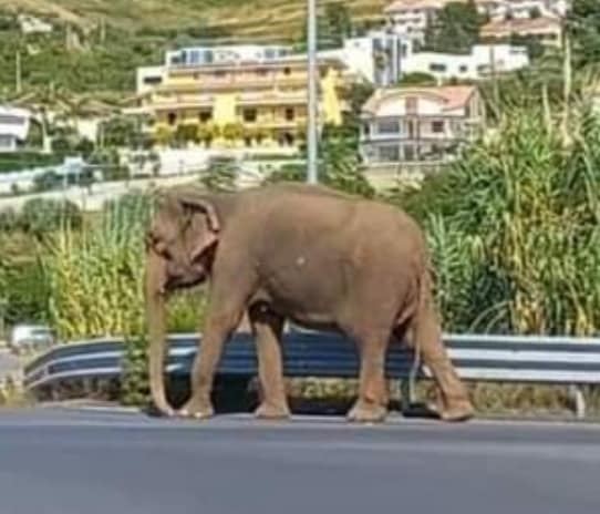 AMANTEA Capita anche questo per le strade calabresi. Un elefante, fuggito dal circo in questi giorni presente ad Amantea, ha iniziato a passeggiare lungo la Statale Tirrenica cosentina.