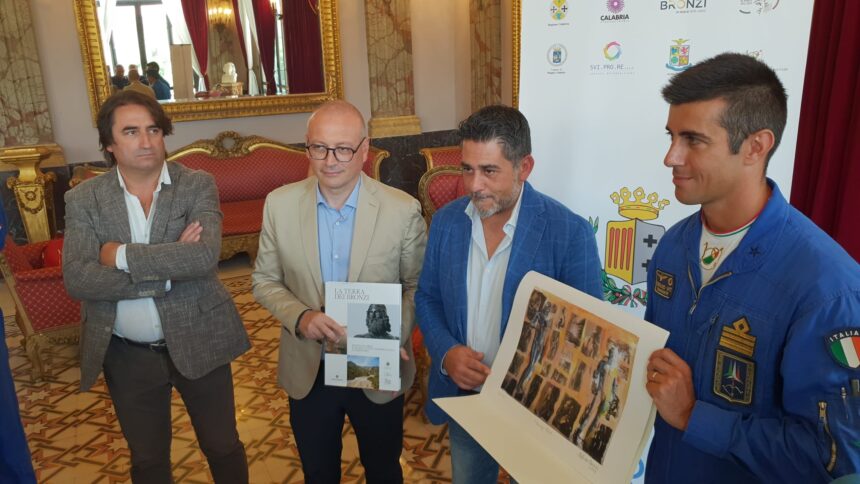 Nel corso dell’incontro è stata donata una splendida litografia in edizione limitata, che celebra i 50 anni del ritrovamento dei Bronzi di Riace, ed una particolare pubblicazione a tema. «Per la nostra città – ha invece detto il sindaco facente funzioni di Reggio Calabria, Paolo Brunetti – la vostra presenza non rappresenta solo uno spettacolo aereo, ma assume una valenza molto più forte, è ricordare a tutti noi che facciamo parte dello Stato e dell’Italia. Questa attenzione che avete avuto nei nostri confronti, accettando l’invito dell’Aero club dello Stretto – ha concluso – vuol dire che lo Stato è presente e noi tutti siamo fieri di farvi parte».
