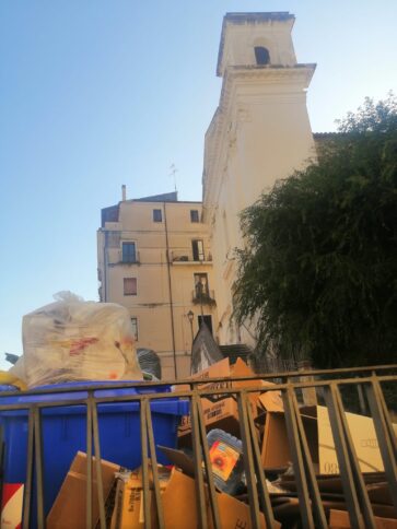 LAMEZIA TERME «È singolare quanto accade a Lamezia Terme. Il grande rispetto per le chiese e l’attenzione dei nostri amministratori comunali hanno partorito la genialità di collocare i mastelli della spazzatura in prossimità degli ingressi delle chiese». È quanto denuncia sul suo profilo Facebook Giuseppe Marinaro, coordinatore dell’associazione “Malati cronici” Lamezia nonché esponente di Italia Nostra. «Mostriamo quanto abbiamo potuto verificare – evidenzia Marinaro nel suo post – sia per la Cattedrale che per la chiesa di santa Caterina. Inoltre i mastelli abbelliscono il corso principale della città che è privo di manifestazioni di grande richiamo ma ricco di bidoni colorati di spazzatura».