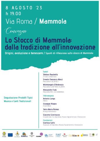 MAMMOLA “Lo Stocco di Mammola: dalla tradizione all’innovazione”; origini, evoluzione e benessere, spunti di riflessione sullo stocco di Mammola. Questo il titolo del convegno che si terrà martedì 8 agosto, alle ore 19, in via Roma a Mammola.