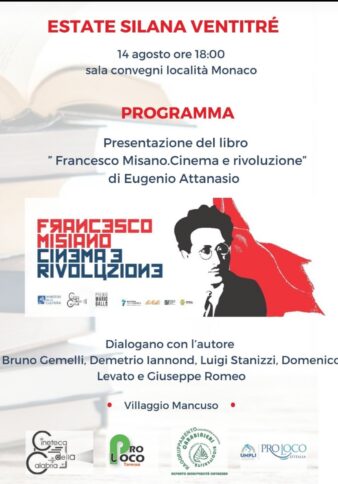 Titolo del volume “Franceso Misiano: Cinema e Rivoluzione. Opere letterarie/Avventure di Celluloide”. Partecipano Bruno Gemelli, Giuseppe Romeo, Demetrio Iannone, Luigi Stanizzi, Domenico Levato e il curatore Eugenio Attanasio. Dopo diciotto anni dalla realizzazione del documentario “Il caso Misiano”, che ha fatto rinascere l’interesse e gli studi su questo grande personaggio, la Cineteca della Calabria, a suggello di un complesso e faticoso lavoro di ricerca condotto all’estero, continua nella sua opera di recupero della memoria storica, con un’opera che getta nuova luce sugli studi finora pubblicati. Il volume è curato da Eugenio Attanasio con interventi di Domenico Levato e Demetrio Iannone, ricerca iconografica e coordinamento editoriale di Antonio Renda, progetto grafico di Guglielmo Sirianni, collaborazione ai testi di Raffaele Cardamone, ufficio stampa di Luigi Stanizzi, e debutta a Torino, proprio la città dove Misiano viene eletto deputato nel 1919, e dove era stato precedentemente arrestato nel 1915 per aver partecipato allo sciopero generale.