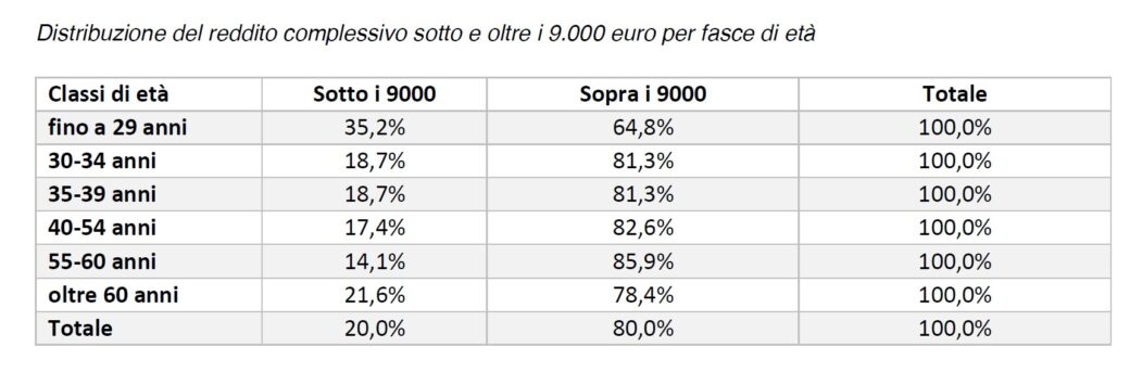 Le donne sono più penalizzate rispetto ai loro colleghi: oltre 2 donne su dieci hanno un reddito al di sotto dei novemila euro contro il 17,2% degli uomini.