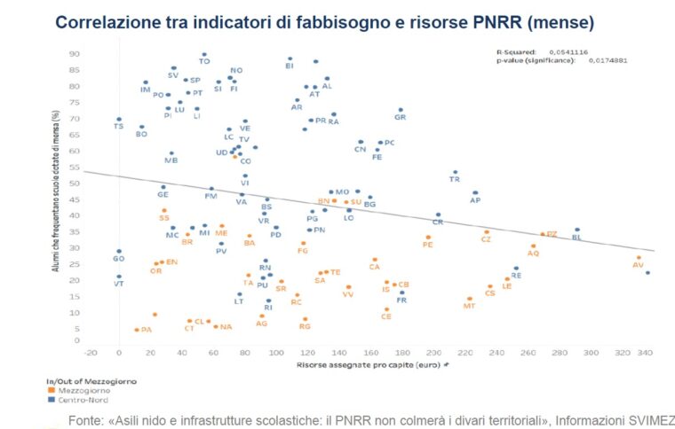 «I dati che abbiamo, fanno emergere un quadro in chiaro-scuro ma nel quale prevalgono le ombre. Positiva è stato senz’altro la risposta dei Comuni calabresi che hanno esercitato il massimo sforzo per partecipare ai bandi nonostante le grandi carenze di organico. Ma troppo spesso i meccanismi competitivi previsti hanno finito per penalizzare proprio i comuni più fragili fallendo nell’obiettivo di concentrare le risorse laddove ce n’era più bisogno. Una nostra analisi sui bandi relativi agli asili nido e alle scuole conferma le nostre preoccupazioni: in Calabria appena il 23% delle scuole primarie ha la mensa e il 19% la palestra, valori pari ad un terzo di quelli medi del Nord. Con i bandi Pnrr della scuola, la Calabria ha avuto 330 euro pro capite, l’Emilia Romagna 220 euro. Impossibile con un differenziale così basso colmare i divari. La gran parte delle risorse sarebbe dovuta andare nelle aree in cui i servizi sono assenti o carenti».