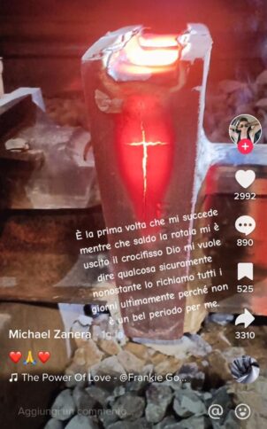 Messaggio di Michael Zanera su Tik Tok: «Mentre saldo mi è uscito il crocifisso»