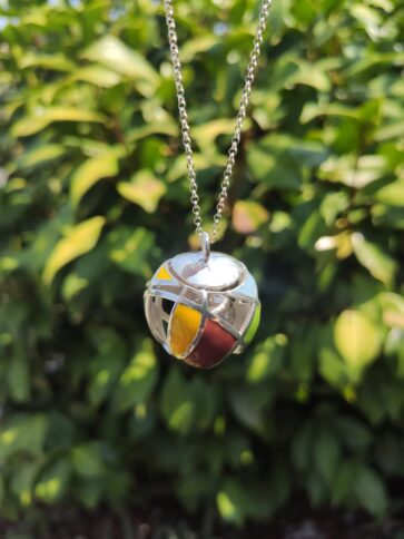 Novità assoluta del festival, la volontà di realizzare un monile, simbolo identitario del borgo di Cardinale. A dargli forma e foggia in argento massiccio 925, Officina Orafa, un’importante realtà del luogo, proiettata ormai nel panorama nazionale del settore jewellery, che ha sviluppato da un punto di vista stilistico e tecnico, il bozzetto vincitore del contest promosso dal Festival ‘Ntramenti. L’autrice del bozzetto è Laura Paterlini di Reggio Emilia. Alla call hanno risposto una ventina di artisti da tutta Italia. Attenendosi al concetto di base, adattato alle esigenze di produzione, nasce così il gioiello “scorza” che vede una “corazza” metallica con smalti policromi a protezione del nucleo, la nocciola Tonda calabrese, realizzato anch’esso in argento massiccio. Simboleggia la comunità che si stringe a protezione del bene prezioso: la nocciola.