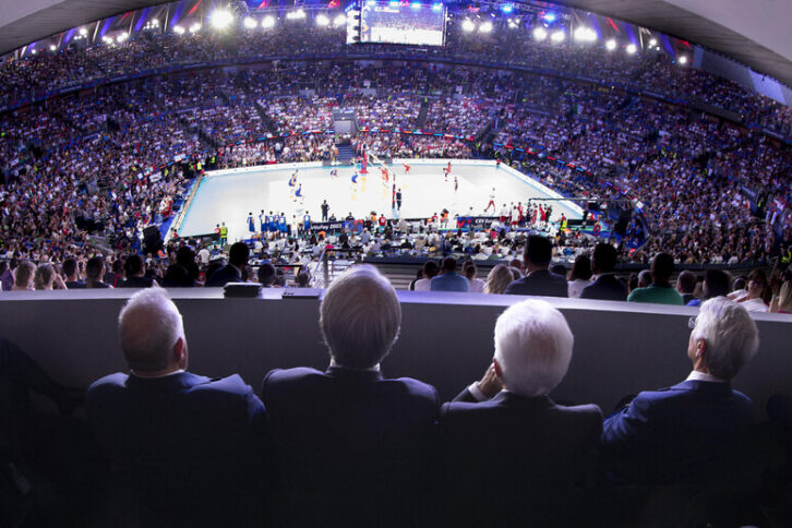 Sconfitti tre set a zero gli azzurri di De Giorgi davanti al presidente Mattarella