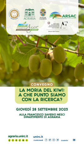 REGGIO CALABRIA Giovedì 28 settembre 2023 alle ore 9, nell’Aula Seminari “Francesco Saverio Nesci” del Dipartimento di Agraria dell’Università Mediterranea di Reggio Calabria si terrà un importante Convegno dal titolo “La moria del Kiwi: a che punto siamo con la ricerca?” per fare il punto sulle conoscenze attualmente disponibili e sulle strategie di difesa efficaci, ricerca scientifica e assistenza tecnica.