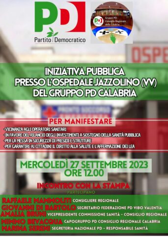 «La nostra battaglia – scrive ancora Mammoliti – continuerà sia sul versante delle iniziative, che delle proposte, soprattutto sollecitando chi è chiamato a governare la sanità vibonese a voler garantire l’affermazione dei livelli essenziali di assistenza. A sostegno di tale percorso, mercoledì 27 Settembre terremo davanti all’ospedale Jazzolino un incontro con la stampa per illustrare le proposte e le iniziative del partito democratico a sostegno della sanità pubblica. Infine, come più volte ribadito, bisognerà vigilare sulla costruzione del nuovo ospedale». «Infatti, la costruzione del nuovo ospedale – sottolinea il consigliere regionale – non rappresenta solo un’infrastruttura strategica per il miglioramento della sanità vibonese, che tra l’altro avrebbe dovuto realizzarsi con l’ordinanza di protezione civile, ma rappresenta un’occasione fondamentale per affermare la legalità in questo settore. Continueremo a vigilare come gruppo e attiveremo un confronto positivo, sollecitando l’attenzione necessaria a tutte le forze sane e democratiche di questo territorio».