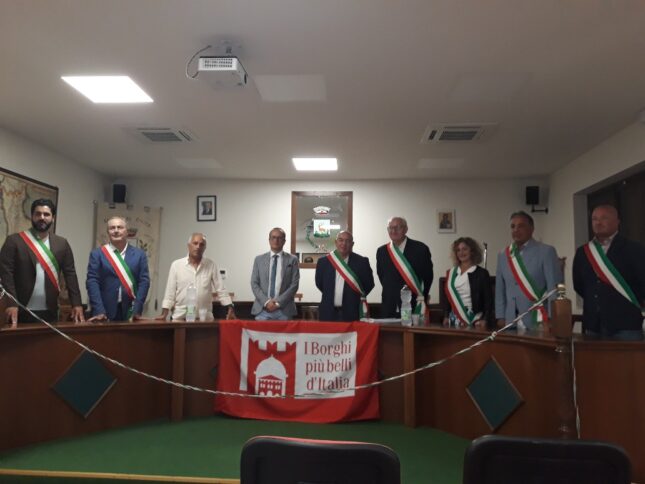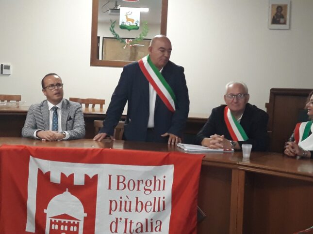 «Quella di oggi – hanno dichiarato i due amministratori del Borgo italo-albanese – è una magnifica opportunità per dare visibilità e promozione del borgo di Civita e dei borghi calabresi. Dobbiamo fare fronte comune anche nei confronti della Regione. Noi, i Borghi, – ha concluso Tocci – rappresentiamo una delle cose più belle della Calabria che vogliamo mostrare a tutti». Alla cerimonia di consegna della Bandiera, svoltasi presso la sala consiliare del comune di Civita, hanno partecipato, oltre ai padroni di casa, il sindaco, Alessandro Tocci, e il coordinatore regionale dei Borghi, Andrea Ponzo, e al presidente del consiglio comunale di Tropea, Francesco Monteleone, il delegato nazionale, Bruno Cortese, e i rappresentanti dei comuni di Aieta (vicesindaco Anna La Cava), di Buonvicino (vicesindaco Gianluca Cauteruccuio), di Morano (vicesindaco Mario Donadio), di Oriolo (vicesindaco Agostino Diego) e di Stilo (sindaco Giorgio Tropeano). La Bandiera del Festival Nazionale de I Borghi più belli d’Italia adesso, fino alla prossima tappa che è prevista per il mese di novembre, garrisce e fa bella mostra sul balcone della Casa Comunale di Civita.