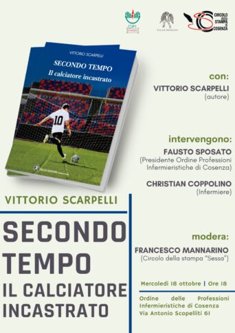 Location scelta per la penultima presentazione di “Secondo tempo – il calciatore incastrato” la sede dell’Opi (Ordine delle professioni infermieristiche) di Cosenza (via Antonio Scopelliti 61). Nel corso dell’incontro, moderato dal giornalista e componente del Circolo della stampa “Maria Rosaria Sessa” (che sin dall’uscita del libro ha sposato la causa) Francesco Mannarino, discuteranno con l’autore: il presidente dell’Opi cosentina, Fausto Sposato e dell’infermiere Christian Coppolino, rappresentanti di una schiera che ha vissuto in prima fila il dramma della pandemia e che, quotidianamente, si trova ad affrontare emergenze sanitarie e ristrettezze che compromettono – da un lato – il diritto al lavoro (dei camici bianchi) – dall’altro – il diritto alla salute (dei pazienti).