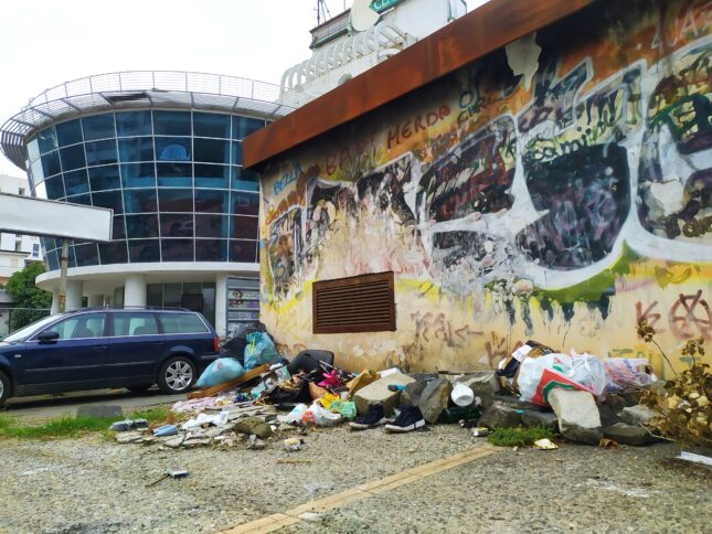 Affacciato su viale Mancini e a 50 metri dall’isola pedonale, continua ad accumulare rifiuti da quando non è più occupato dai senza casa