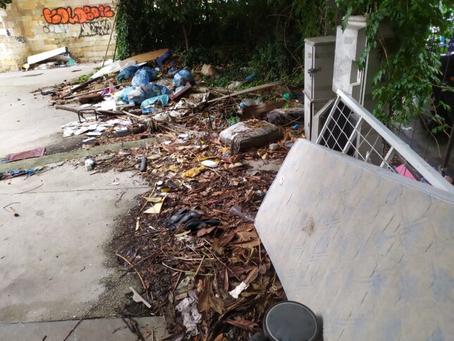 COSENZA La madre di tutte le discariche si trova a 50 passi dal salotto buono della città e ad appena 10 da viale Mancini. Recinzioni arrugginite e divelte garantiscono l’affacciata quotidiana su un tappeto di materassi, plastica, rifiuti organici e indifferenziati, vestiti abbandonati, barattoli e bottiglie di vetro, materiale inerte ed escrementi di cane, foglie secche e vegetazione lussureggiante che inizia ad avare la meglio su muri e pavimenti.