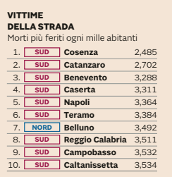 Cosenza, prima per minore incidenza di morti e feriti in incidenti stradali (buone posizioni anche per Catanzaro, che è seconda, e Reggio Calabria, ottava), mantiene tra l’altro posizioni di alto livello guardando alla presenza di alberi, isole pedonali, infrastrutture ciclabili e solare sugli edifici pubblici. Catanzaro compare al 66esimo posto nella graduatoria finale (perde tre posizioni), elaborata sulla base di 19 parametri. Vibo Valentia è 95esima (49 posizioni in meno rispetto alla scorsa edizione), Reggio Calabria 99esima (8 posizioni in meno), Crotone stabile al 100esimo posto.