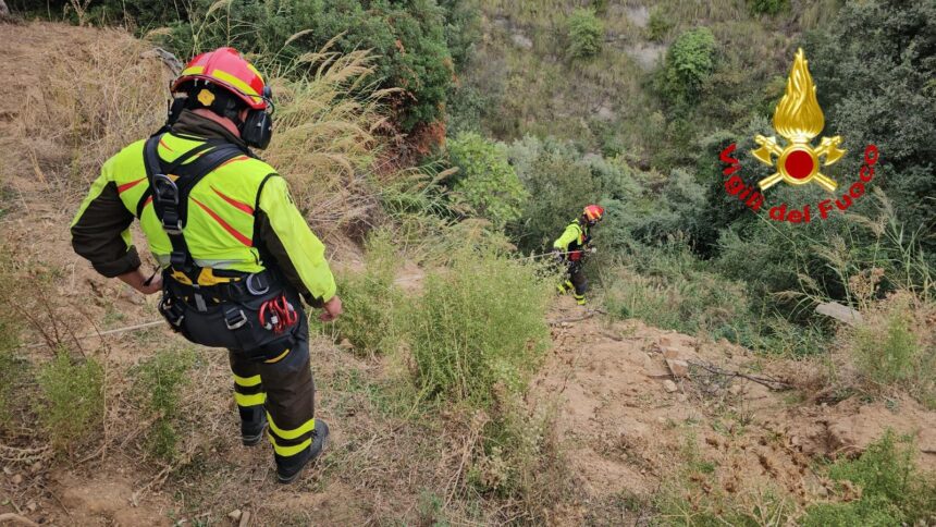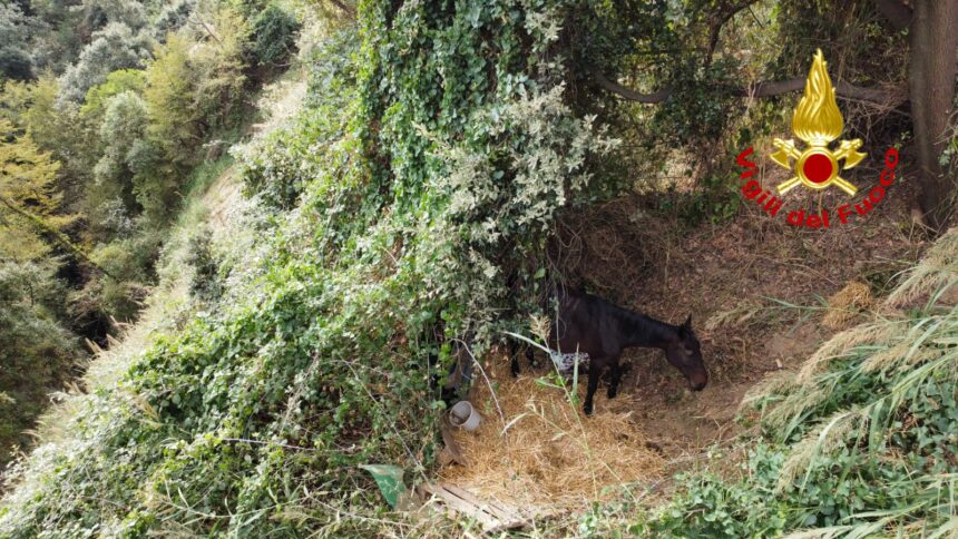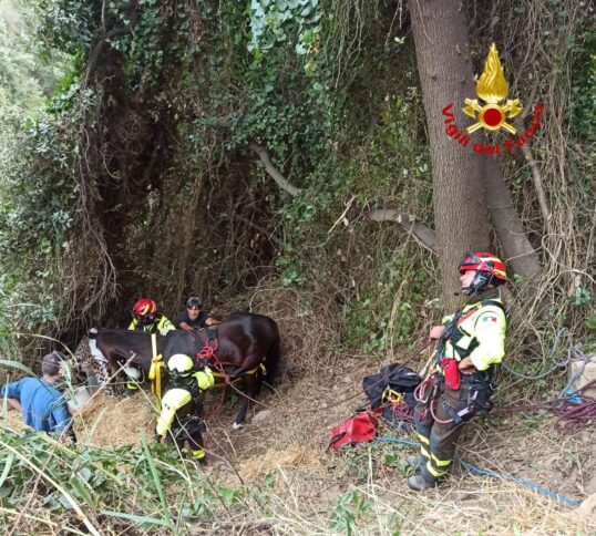 Cavallo precipita in un dirupo per 30 metri nel Crotonese, salvato dai vigili del fuoco – FOTO