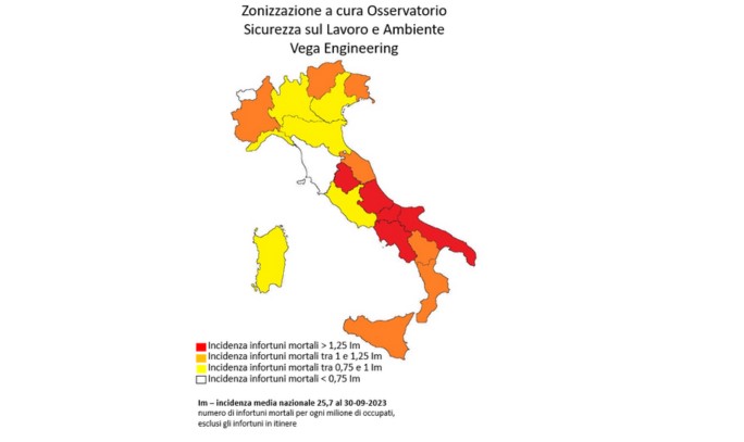 In Calabria si contano 16 vittime tra gennaio e settembre 2023. I dati dell’Osservatorio Sicurezza sul Lavoro Vega Engineering di Mestre